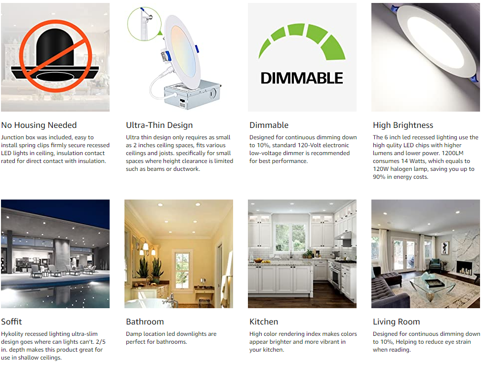 6 Inch 5cct Ultra Thin Led Recessed Light With Junction Box 14w 100w Hykolity